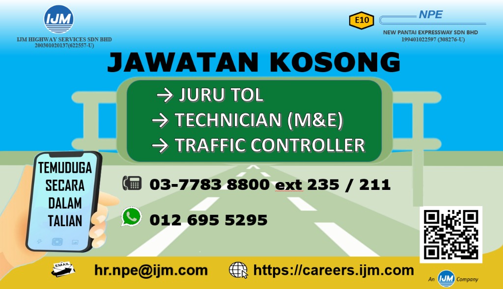 Jawatan Kosong Juru Tol Technician M E Dan Traffic Controller Jobs Full Time Others On Carousell